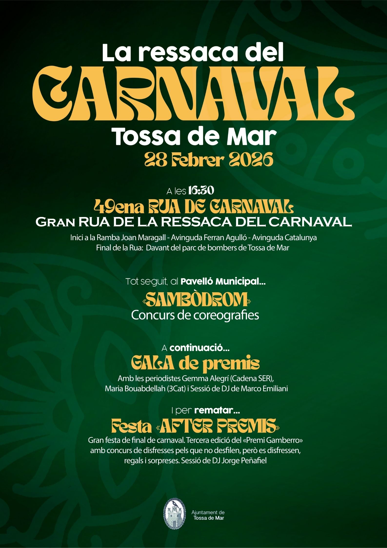 Inscripcions al web www.tossademar.cat/carnaval o bé, a la Casa de Cultura (Av. del Pelegrí, 8), presencialment o per telèfon 972 340 905, fins el dimecres 18 de febrer de 2026.